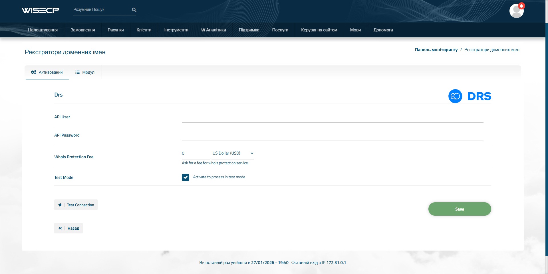 У процесі реалізації проєкту було виконано адаптацію API DRS під архітектуру WISECP, впроваджено підтримку EPP протоколу. Особливу увагу було приділено безпеці та відповідності сучасним стандартам програмування, адже модуль має гарантувати безперервність сервісу та коректність виконання критично важливих операцій.
