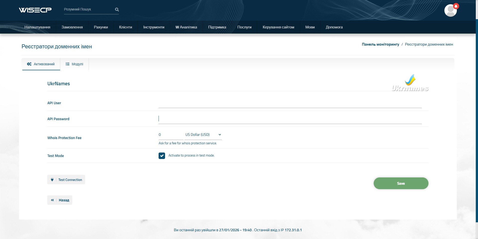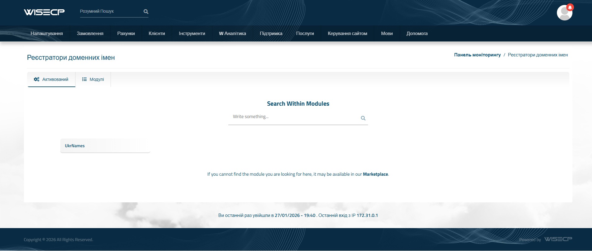 Модуль реєстратора UkrNames для WISECP був розроблений компанією WebZen Studio на замовлення нашого партенера - Starlink. Його створення мало на меті інтеграцію платформи WISECP з одним із провідних українських реєстраторів доменів – UkrNames. Завдяки цьому модулю користувачі отримали можливість автоматизувати процеси реєстрації, продовження та управління доменами безпосередньо через WISECP, що значно підвищує ефективність роботи та зручність для клієнтів.